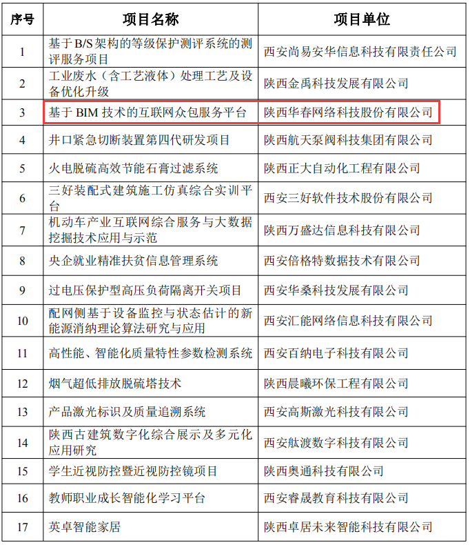 根據《碑林區科學研究與發展資金管理辦法》和《2019年碑林區科技計劃項目評審工作方案》要求,經碑林區科學技術局領導實地考察、專家層層評審,華春網絡申報的“基于BIM技術的互聯網眾包服務平臺”項目在2019年度碑林區科學研究與發展資金擬立項項目中脫穎而出,成功入選。
