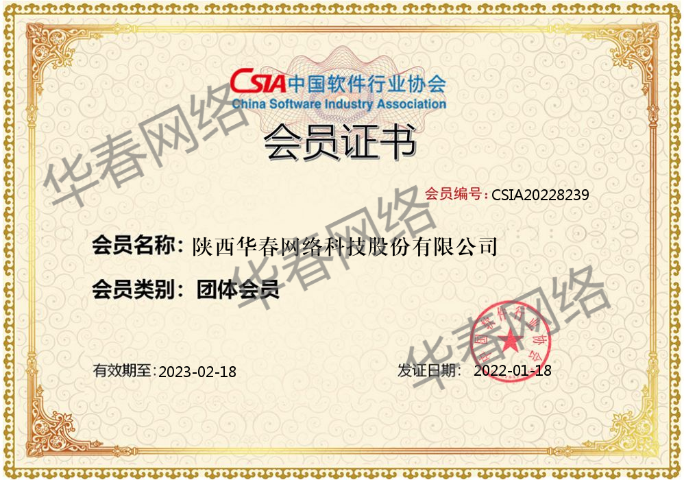 022年1月18日,經中國軟件行業協會的嚴格審核,陜西華春網絡科技股份有限公司正式加入中國軟件行業協會,成為團體會員。